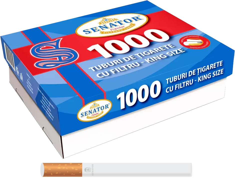 Tuburi țigări SENATOR Popular (1000) Cutie cu 1000 de tuburi de ţigări Senator 1000 pentru injectat, cu filtru de 15 mm, având dimensiuni King Size (84mm).Aceste tuburi de ţigări pot fi încărcate cu orice injector de tutun pentru tuburi standard.Lungime standard 84 mm, filtru roşu 15 mmPerfecte pentru orice tip de tutun pentru injectat. CERE OFERTĂ